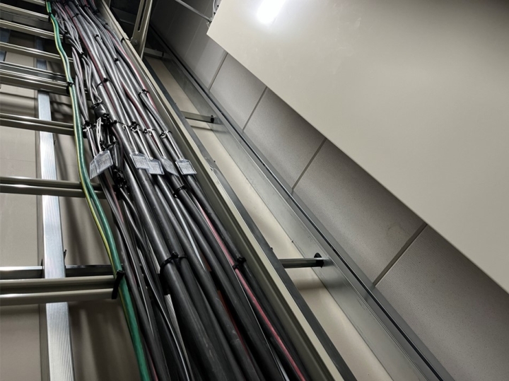 幹線工事とは、中~大規模建築物において、電気室から各分電盤に電力を供給するための配線工事です。